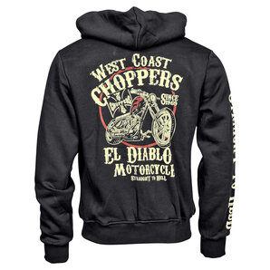 Con questa felpa con cappuccio, West Coast Choppers ha colpito nel segno. Una felpa con cappuccio maledettamente ben fatta per la highway to hell!